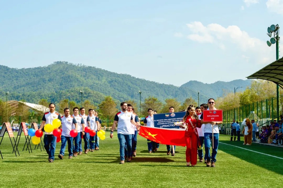 上午9时,米拉多杯锦标赛开幕式正式拉开帷幕。各代表队表演方阵精心策划、倾心展示,只见行政支部代表队挥舞国旗,高呼“求实创新 合作自强”、“逢山凿路 遇水架桥”的口号,展现出股东单位铜陵有色和中国铁建的企业精神;中铁十九局代表队表演热情洋溢的厄瓜多尔舞蹈,体现出当地印第安风情;铜冠建安代表队别出心裁,将生产工具和足球运用到方阵表演中,两组队员分别穿工作服和运动衣亮相,寓意努力工作、快乐生活;瓜拉基萨63号军营代表队的军人们,面涂油彩、身着迷彩服,他们的声音铿锵有力、步伐整齐划一,表达出对ECSA的崇高敬意和坚定支持……此时此刻,被群山环绕的足球场在蓝天白云的映衬下,旌旗猎猎、鼓角声声,全体队员和观众跨越国界和语言,相互尊重、携手并肩、共同前进。