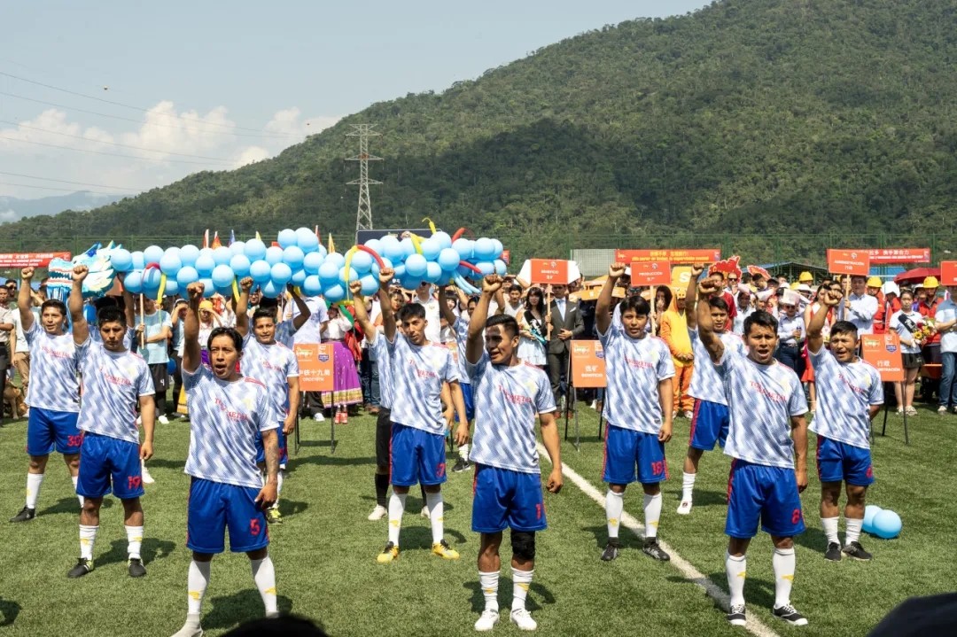 上午9时,米拉多杯锦标赛开幕式正式拉开帷幕。各代表队表演方阵精心策划、倾心展示,只见行政支部代表队挥舞国旗,高呼“求实创新 合作自强”、“逢山凿路 遇水架桥”的口号,展现出股东单位铜陵有色和中国铁建的企业精神;中铁十九局代表队表演热情洋溢的厄瓜多尔舞蹈,体现出当地印第安风情;铜冠建安代表队别出心裁,将生产工具和足球运用到方阵表演中,两组队员分别穿工作服和运动衣亮相,寓意努力工作、快乐生活;瓜拉基萨63号军营代表队的军人们,面涂油彩、身着迷彩服,他们的声音铿锵有力、步伐整齐划一,表达出对ECSA的崇高敬意和坚定支持……此时此刻,被群山环绕的足球场在蓝天白云的映衬下,旌旗猎猎、鼓角声声,全体队员和观众跨越国界和语言,相互尊重、携手并肩、共同前进。